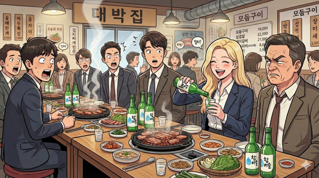 To a foreigner, it looks like a party. Free BBQ! Free alcohol! Do not be fooled. Hoesik is a battlefield disguised as a dinner. Every shot of Soju is a test of your loyalty. Every piece of pork belly is a test of your “Nunchi” (social awareness).