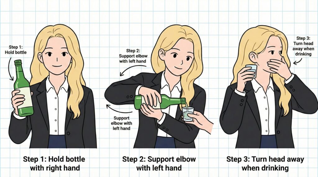 - The Angle: Turn your head slightly away from the boss when you drink. Do not make eye contact while chugging Soju. It’s considered aggressive.