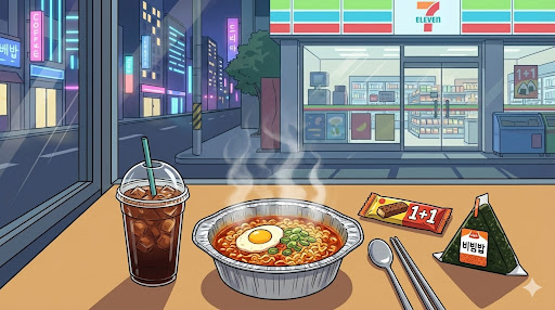 Korean convenience stores are safe, bright, and full of treasures. Don’t just grab water and leave. Check the tags. Make an ice cup drink. Sit at the plastic table outside.