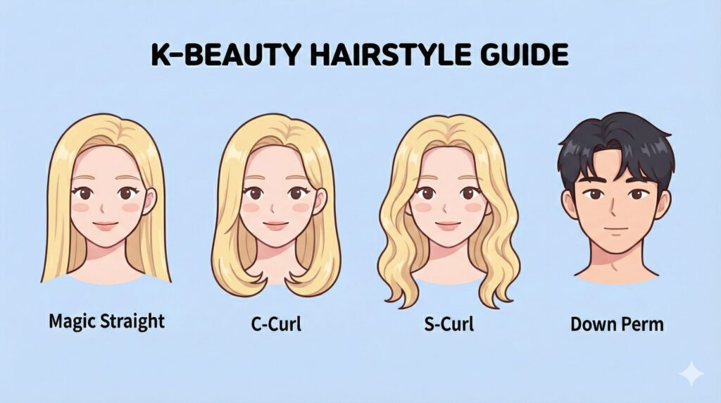 - Root Perm (뿌리펌): Adds volume ONLY to the roots. (Highly recommended for flat hair).