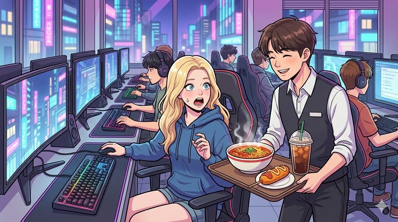 In the West, an “Internet Cafe” is a sad place with slow computers where you go to print a PDF. In Korea, a PC Bang (PC Room) is a neon-lit palace of high-end technology and gastronomy.